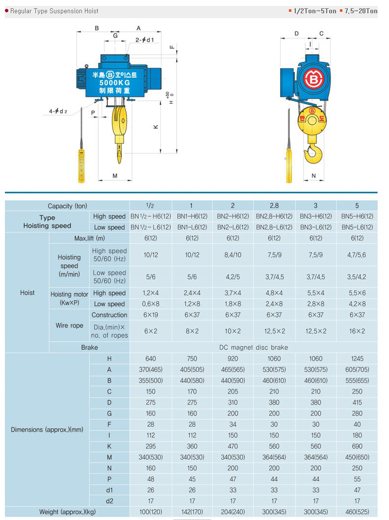 (*표준양정 [6M,12M]이상의 HOIST는 당사로 별도문의)