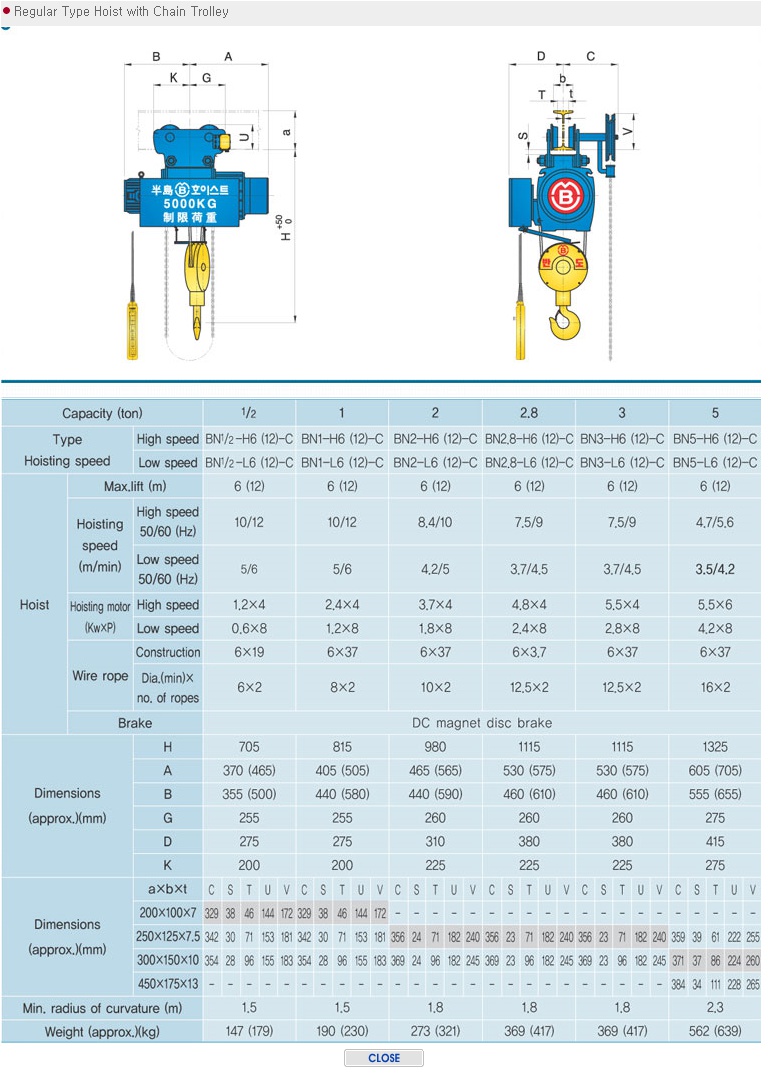 | 양정 : 6 M ~ 60 M (*표준양정 [6M,12M]이상의 HOIST는 당사로 별도문의) |
